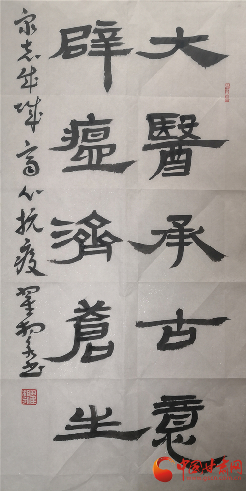 中國甘肅網(wǎng)2月12日訊(本網(wǎng)記者 張?zhí)m琴 張玉芳)2020年新春,面對(duì)突如其來的新冠肺炎疫情,全國人民正在以必勝的信心全力打贏這場(chǎng)沒有硝煙的戰(zhàn)爭(zhēng)。翰墨傳情,為抗疫助力。2月11日,由甘肅省文聯(lián)主辦,甘肅省文聯(lián)所屬文藝家協(xié)會(huì)、中國甘肅網(wǎng)承辦的甘肅文藝界戰(zhàn)“疫”主題作品展播活動(dòng)正式啟動(dòng)。我省12位書法大家揮毫潑墨,這些作品為所有奮戰(zhàn)在抗疫一線和防控疫情工作的平凡天使加油鼓勁,祈禱祝福,用文藝凝聚起抗擊疫情的強(qiáng)大精神力量,為我省防控疫情宣傳助力,受到了社會(huì)各界的贊譽(yù)。