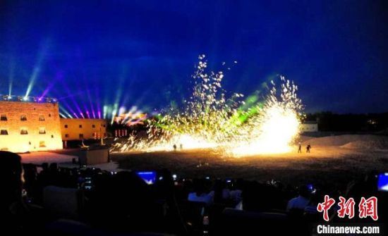 圖為沙漠實(shí)景劇《敦煌盛典》的演出現(xiàn)場(chǎng),觀眾在“穿越”古今的賞劇體驗(yàn)中感觸絲路文化?!】靛\虎 攝