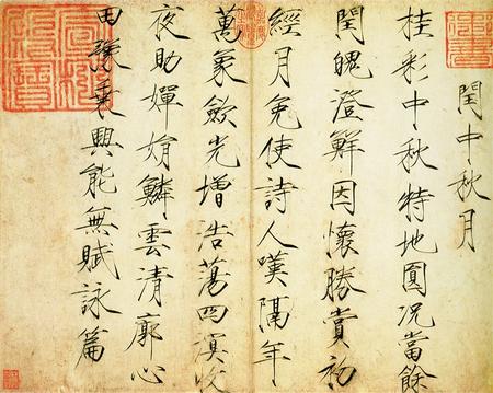 《閏中秋月帖》中所記為一首七言律詩:“桂彩中秋特地圓,況當(dāng)余閏魄澄鮮。因懷勝賞初經(jīng)月,免使詩人嘆隔年。萬象斂光增浩蕩,四溟收夜助嬋娟。鱗云清廓心田豫,乘興能無賦詠篇。”其內(nèi)容敘述了當(dāng)年中秋夜?jié)M街華彩、月光皎潔、萬象浩蕩的美景。
