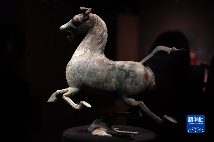 銅奔馬又名“馬踏飛燕”“馬超龍雀”,20世紀(jì)60年代出土于甘肅省武威市雷臺(tái)漢墓。1983年,國(guó)家旅游局將銅奔馬形象確定為中國(guó)旅游標(biāo)志。2002年,銅奔馬被列入《首批禁止出國(guó)(境)展覽文物目錄》。(完)