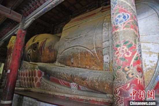 12月中旬,甘肅張掖大佛寺中重要文物的“數(shù)字孿生”打造工作已進(jìn)入新階段。圖為木胎泥塑臥佛?!钇G敏 攝