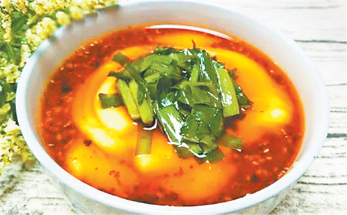 西峰的臊子面也很有地方特色,因其太辣,吃在嘴里不斷發(fā)出噓噓哨聲,故又稱“哨子面”。西峰臊子面制作獨(dú)特,吃法有趣,堪稱一絕。正如一首民歌唱到“十八省里(那個(gè))轉(zhuǎn)一遍,好不過咱們西峰的臊子面”。西峰臊子面做工精細(xì),制作分揉面、搟面、做湯、煮面幾個(gè)工序:“抻的面銀團(tuán)團(tuán),搟的面紙一般,剁的面千條線,下到鍋里蓮花轉(zhuǎn),撈到筷子上打秋千,盛到碗里賽牡丹。”做成的臊子面條長如線,細(xì)如絲,長而柔韌,細(xì)而不斷,噴香美味,別具風(fēng)味。