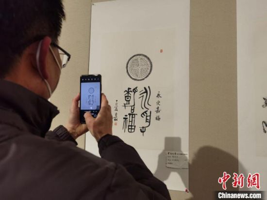 圖為觀展者用手機(jī)記錄傳拓技藝。 崔琳 攝