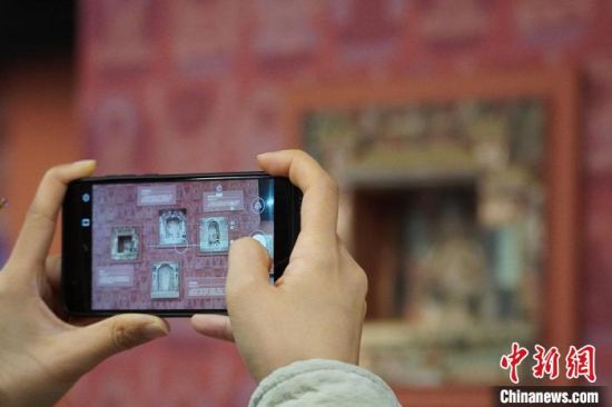 圖為觀眾欣賞數(shù)字復(fù)制壁畫?!【琶赖┰?nbsp;攝