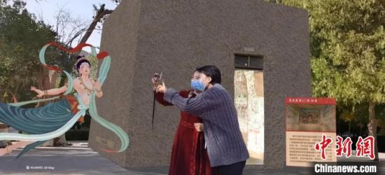 同時(shí),游客還能收獲與眾不同的“打卡照”,在景區(qū)與不同朝代的“飛天”進(jìn)行親密互動,在特殊的場景中還能與九色鹿、3D大佛等虛擬形象合影留念。