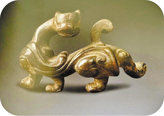 這件文物最吸引目光的便是回望的神情和充滿力量且?guī)е┱{(diào)皮的后肢。