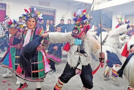 “池哥晝”是居住在文縣鐵樓鄉(xiāng)的白馬人傳承至今的一種民間舞蹈和傳統(tǒng)祭祖活動,為國家級非物質(zhì)文化遺產(chǎn)。“池哥晝”是隴南白馬語的音譯,為山神之意,“晝”表示舞蹈。“池哥晝”因表演時頭戴面具,亦稱“白馬面具舞”。白馬人是古代仇池國白馬氐族后裔,距今有兩千多年歷史。