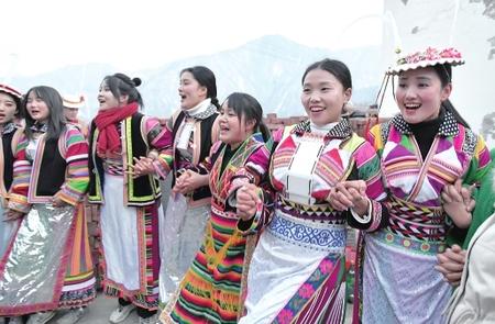 文縣鐵樓鄉(xiāng)麥貢山村,當(dāng)?shù)鼐幼〉臇|亞最古老部族白馬藏族用自己獨特的民俗——跳“池哥晝”,歡度元宵佳節(jié)。