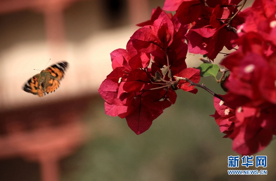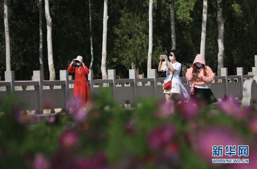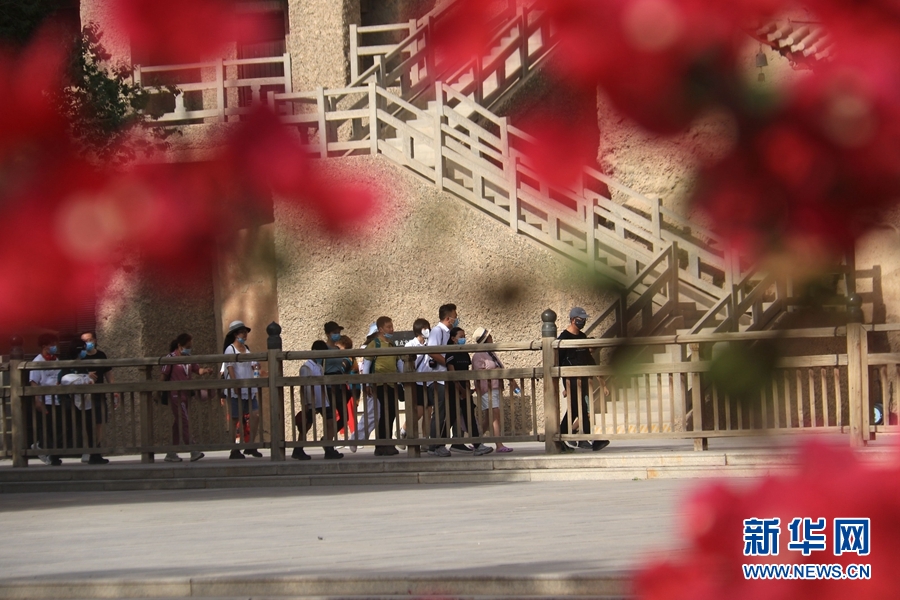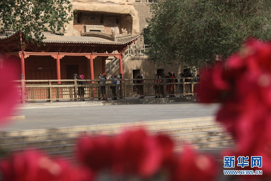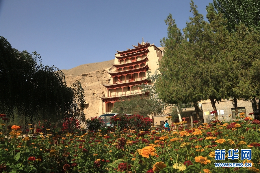 盛夏時(shí)節(jié),甘肅省敦煌市莫高窟景區(qū)在三角梅、百日菊等花草的映襯下,顯得分外美麗迷人。