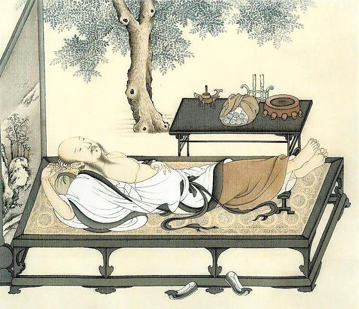 唐代的虢國夫人的“夜明枕”更為稀奇。五代王仁裕在《開元天寶遺事》中有記載:“夜明枕”,其實(shí)是一種玉石枕頭:“虢國夫人有夜明枕,設(shè)于堂中,光照一室,不假燈燭。”此外,“石膏枕”也是古人的消暑佳物,除了降溫納涼,還有解暑安神的保健功能。唐代詩人薛逢寫《石膏枕》贊頌這種神器:“表里通明不假雕,冷于春雪白于瑤。朝來送在涼床上,只怕風(fēng)吹日炙銷。”