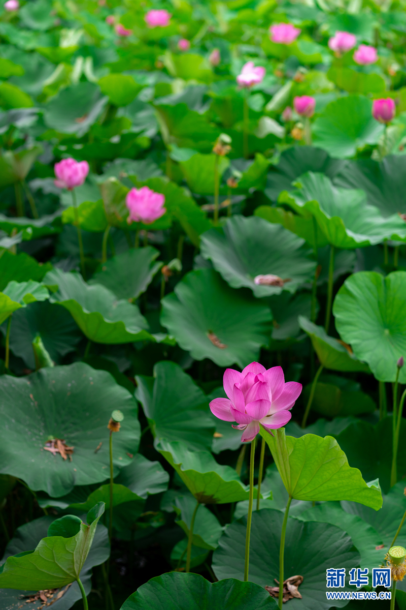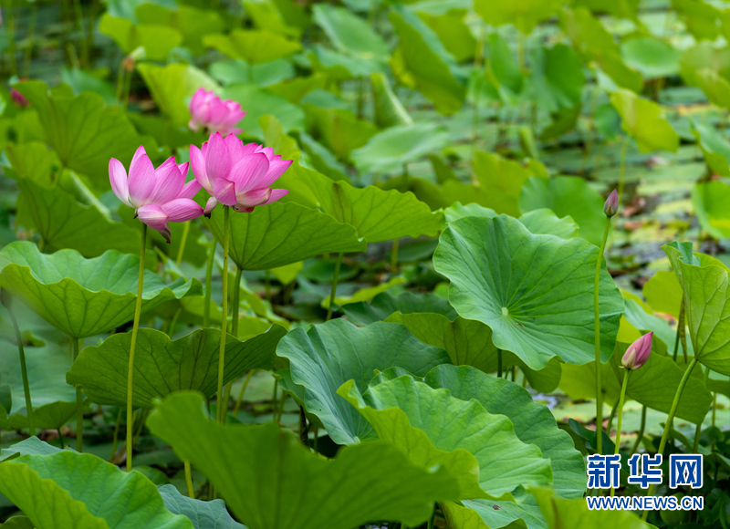 盛夏時(shí)節(jié),甘肅省隴南市成縣裴公湖里的荷花競相綻放,在炎炎夏日中帶來一絲清涼。新華網(wǎng)發(fā)(陳爭強(qiáng) 攝)