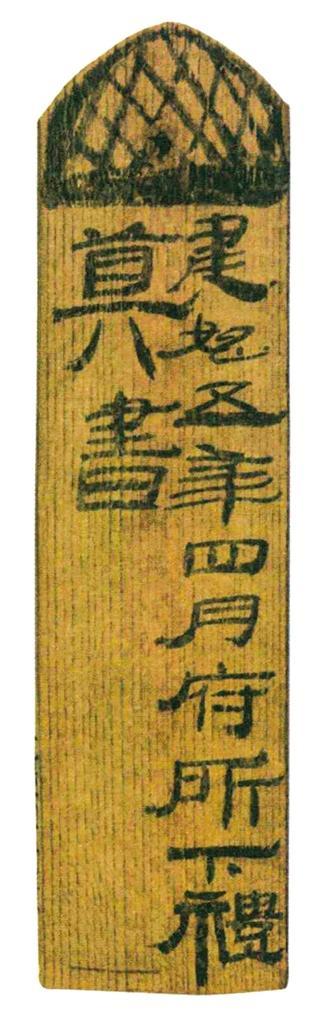 牘是比兩行還要寬,有的可寬至6厘米,長(zhǎng)度多與普通簡(jiǎn)相同,多為木制,用來寫信、契約或抄錄醫(yī)方、歷譜等,墓中發(fā)現(xiàn)的牘大多用來記錄隨葬的物品目錄。