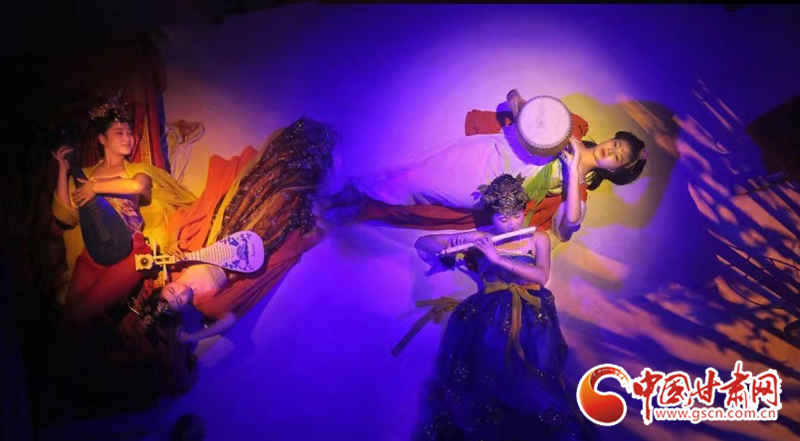 第二表演區(qū)中觀眾將親眼目睹王圓箓送出國寶時的那一幕“心酸”。并在不知覺中被分成十六組進入不同的 “洞窟”,與不同時代古人“對談”。行五十步穿越百年,再行百步穿越千年。