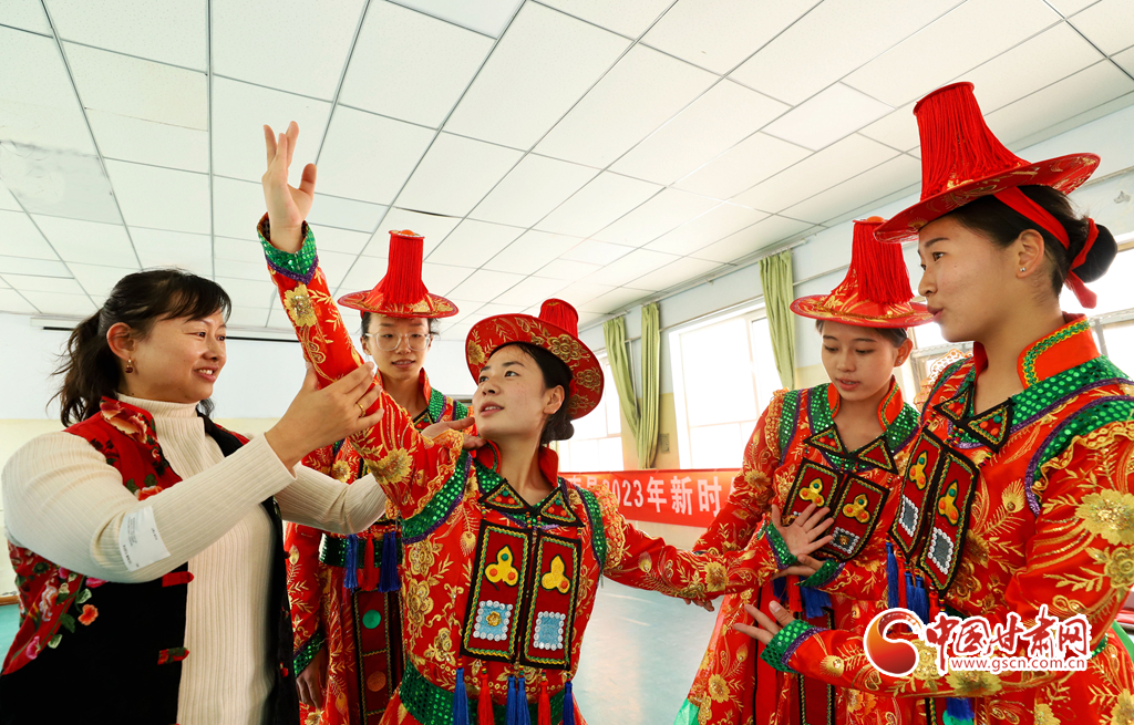 3月21日,肅南裕固族自治縣職教中心非遺傳承人走進(jìn)課堂,向校園內(nèi)的學(xué)生們傳授裕固族服飾制作、裕固族舞蹈、裕固族原生態(tài)民歌演唱等非遺項目。