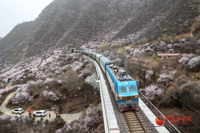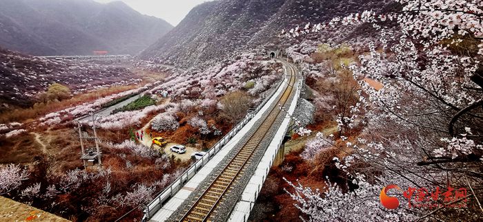陽春三月,桃之夭夭。在崇信縣的漫山遍野上,朵朵桃花迎來盛放期。微風吹來,暗香浮動。近看,朵朵嬌俏的桃花層層疊疊,錯落有致。遠看,漫山紅遍如霞似錦,爛漫壯觀。特別是一列列火車穿行而過,與桃花撞了個滿懷,奔向充滿希望的春天。