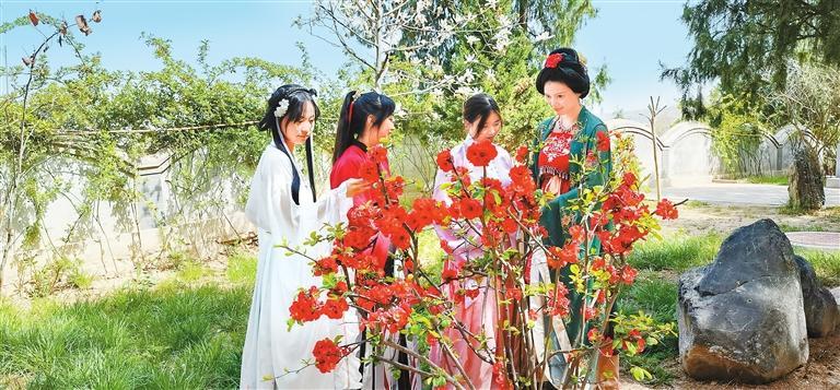 中國甘肅網(wǎng)4月10日訊 據(jù)蘭州晨報報道(奔流新聞·蘭州晨報記者王蘭芳)“百花錦繡,龍城花朝。”4月9日下午,由天水市玉泉觀大景區(qū)服務(wù)中心、天水市博物館、甘肅公航旅天水名城公司主辦的天水市第二屆漢服“花朝節(jié)”盛大啟幕。來自天水市的數(shù)百名漢服愛好者身著各色漢服,或云鬢斜簪輕拂團扇,或衣帶飄飄款款而來。那一刻,煙火人間與國潮美學完美融合,“同袍”們盛裝打扮,共同歡慶“花朝節(jié)”。