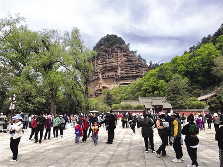 中國甘肅網(wǎng)5月5日訊 據(jù)蘭州晚報報道(記者 哈麗娜 攝)天水市“五一”假期旅游熱度持續(xù)攀升,旅游市場迎來全年第一波高峰。據(jù)統(tǒng)計,4月29日至5月3日,天水市共接待游客679.09萬人次,實現(xiàn)旅游綜合收入40.99億元。與2019年相比,分別增長16.9%和11.8%,創(chuàng)歷史新高。