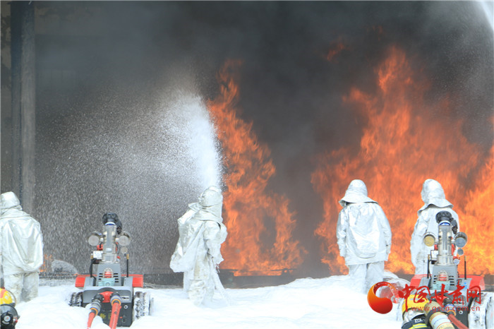現場,爆炸聲浪一波未平,一波又起,黑煙滾滾夾雜火苗亂竄。在嚴峻考驗面前,消防隊伍采用先進技術壓制火力,發(fā)起總攻。最大程度模擬真實火災場景,達到應對復雜火災考驗的能力。