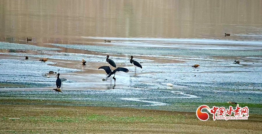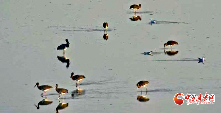 近日,山丹縣濕地保護站工作人員在開展候鳥監(jiān)測工作時發(fā)現(xiàn)14只被稱為“鳥中大熊貓”的黑鸛。