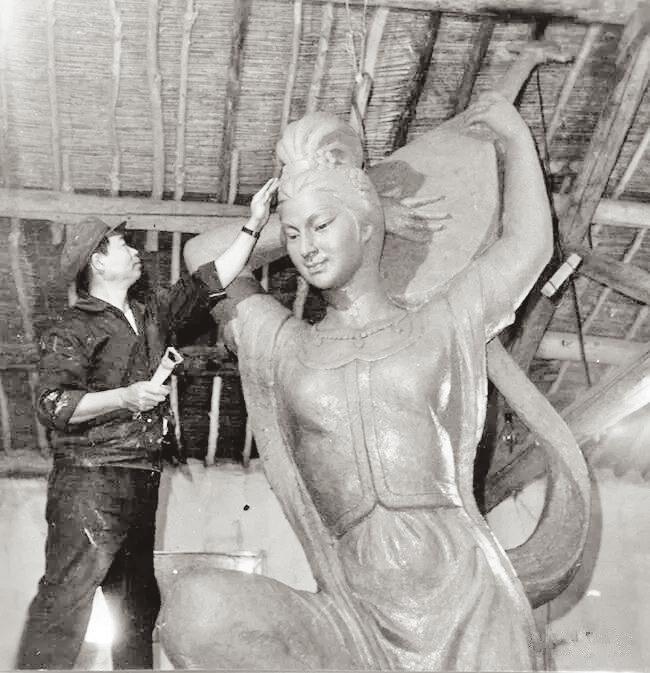 1982年孫紀(jì)元創(chuàng)作“反彈琵琶”雕塑。