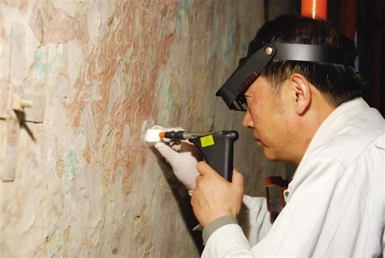 武發(fā)思團(tuán)隊(duì)進(jìn)行石窟寺微生物病害監(jiān)測(cè)