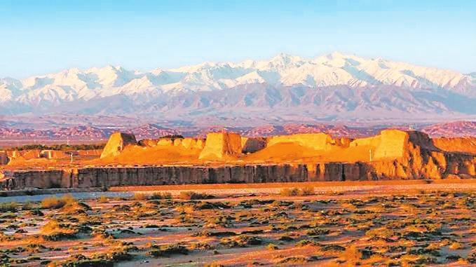 望南山,祁連山頂白雪皚皚;城前,榆木山下草場豐茂。當(dāng)年牛、羊、馬、駱駝成群,生活在這里的人們過著無憂無慮富足的生活。但一千年后,駱駝城已是一座廢城,物是人非。只有高大的城墻和殘?jiān)珨啾谡f明它曾存在過,也輝煌過。