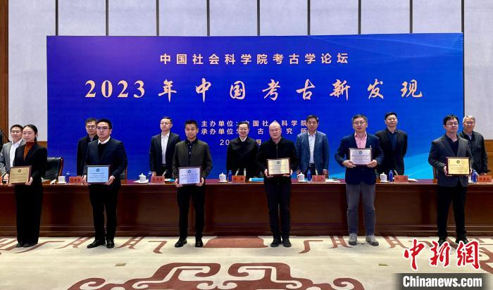 2023年中國考古新發(fā)現(xiàn)入選項目獲頒獎牌。中新網(wǎng)記者 孫自法 攝