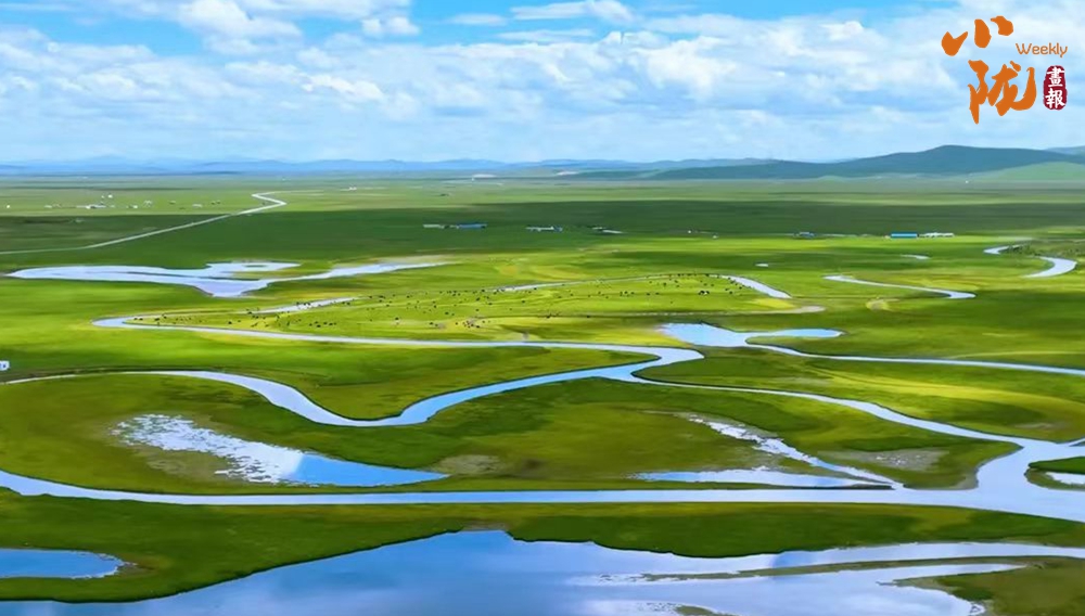 條條溪流蜿蜒縱橫,濕地沼澤星羅棋布,有牛羊信步,俊鷹翱翔,藍(lán)天白云綠地,寬廣遼闊,一望無(wú)際。