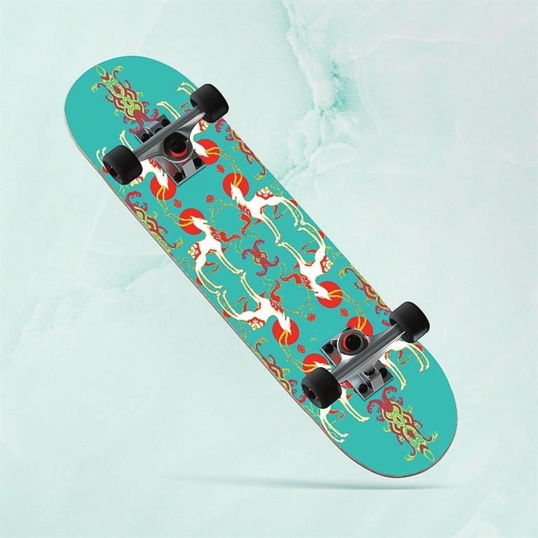 九色鹿滑板——以敦煌壁畫與極限運動相結(jié)合的設計,不僅讓傳統(tǒng)文化玩出了新花樣,同時掀起了一場以敦煌文化為代表的傳統(tǒng)文化消費潮。九色鹿滑板,既代表年輕人的活力和動力,又融合了神秘敦煌的藝術(shù)風格。以九色鹿為創(chuàng)意靈感的敦煌九色鹿系列聯(lián)名滑板,用扁平插畫風格進行再創(chuàng)作,用纖細柔美的線條凸顯九色鹿的優(yōu)美身姿,既保留傳統(tǒng)圖案的華麗精巧,也符合現(xiàn)代審美。