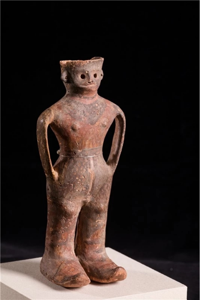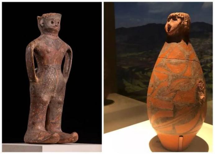 隴東有少女,而位于河西的玉門火燒溝同樣出土了一件距今3700多年的人形彩陶罐,被人們稱做“河西少年”。在2019年“少女”與“少年”這一對(duì)“金童玉女”就已經(jīng)邂逅了,2019年中國(guó)國(guó)家博物館展出“絲路孔道——甘肅文物精華展”時(shí),在展覽序廳門口了生了這樣一場(chǎng)友愛的“接力”。隴東大地灣的可愛“少女”——人頭形器口彩陶瓶說:“出來有一陣子了,在京城過了端午節(jié),該回家了!在京的時(shí)間雖短,但我很高興作為代表在國(guó)家博物館迎接全國(guó)、全世界的觀眾,希望還有機(jī)會(huì)可以再來!”。河西火燒溝的酷“少年”——人形彩陶罐說:“您回家了,我接替您的工作,在展覽的大門口,繼續(xù)帶領(lǐng)觀眾領(lǐng)略多彩厚重的甘肅歷史文明!”