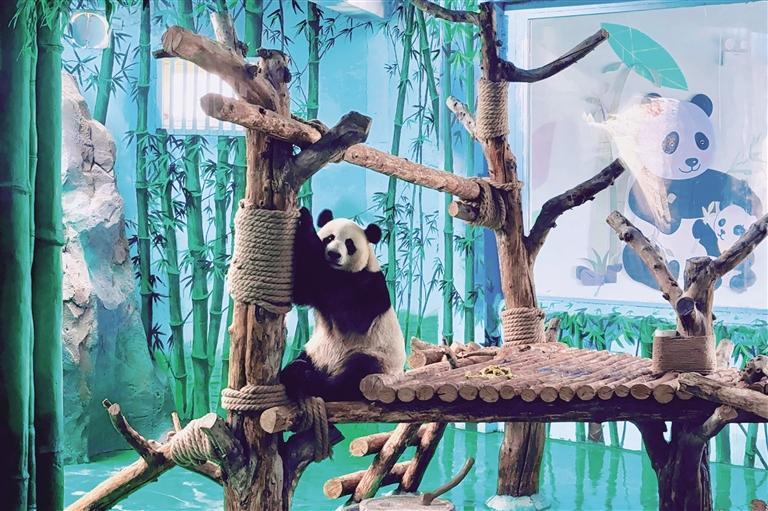 大熊貓有單獨(dú)的籠舍,展示區(qū)域分為內(nèi)展廳和外展廳,配有獨(dú)立的水質(zhì)凈化系統(tǒng)、新風(fēng)系統(tǒng)以及空調(diào)和加濕系統(tǒng),這些配套設(shè)施能完全模擬大熊貓的自然生活環(huán)境。
