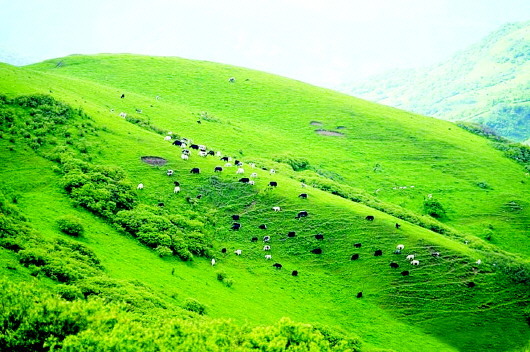 然而,古坡更為人們所津津樂道的是,它秀絕的自然風(fēng)光和蘊(yùn)藏的歷史文化。春末夏初之時,淺秋濃夏之際,是古坡一年中最為優(yōu)美、最為舒適的季節(jié)。深藍(lán)的天空,潔凈的山水,豐茂的林草,清新的空氣,讓古坡沉靜若水,多情似夢。而滿山遍野的奇峰怪石、幽谷甘泉,以及紛至沓來的白云游魚、牛羊牧童,又讓古坡五彩繽紛,美不勝收。每至此時,一撥又一撥的游人,帶著閑適的心情,邁著從容的步履,紛紛來到古坡,沿著古坡河的流水,或?qū)び?,或探勝,或叩問生命的真意,或?qū)ぴL前世的遺夢。