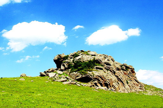 秦人遠(yuǎn)去了,只留下那些讓后人至今懷想不已的地名,諸如石鼓山、景墩梁、牧馬梁、上店子、下店子、大卜峪、瓦泉峪等,而尤以石鼓山最為著名,著名得連那部白發(fā)三千丈的《水經(jīng)注》里,都記載著它的故事:“山在梧中聚,有石鼓不擊自鳴,鳴則兵起。漢成帝鴻嘉三年,天水冀南山有大石自鳴,聲隱隱如雷,有頃止,聞于平襄二百四十里,野雞皆鳴。石長丈三尺,廣厚略等,在崖勒,去地百余丈,民俗名曰石鼓。”石鼓山是朱圉山最高峰,海拔2625米,山峰陡峭,人跡罕至,遠(yuǎn)望如石鼓,近看似臥牛,茂林幽泉,森秀無比。初春時節(jié),萬物透綠而石鼓白雪皚皚;大雨前夕,飛鳥翱翔而山上煙云彌漫。更為神奇的是,山丘之巔,突兀一石,酷似一頭臥北朝南的耕牛,翹首做犀牛望月之狀,人稱臥牛山。臥牛山石頸之下,有一巨石,其面圓而平,每當(dāng)正午陽光直射之時,遠(yuǎn)遠(yuǎn)望去,石面宛如獸皮所蒙,恰如一面威風(fēng)凜凜的巨型戰(zhàn)鼓,恍惚之中,有如雷聲隱隱而來,民呼之曰石鼓,石鼓山因此得名。石鼓山素來以厚重的人文歷史和優(yōu)美的草原風(fēng)光而著稱,尤為聞名的“石鼓擎雪”,自古就是“甘谷八景”之一。千百年來,石鼓山甘愿舍棄繁華,遠(yuǎn)離人世,在淡泊寧靜的歲月中,固執(zhí)而堅(jiān)定地守望古坡,守望古坡人家。