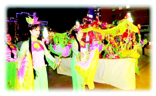 因著葫蘆河的哺育,也有了歷代風(fēng)雅文人、賣(mài)漿者流或言志或抒情的傳承,秦安蠟花舞這項(xiàng)民間舞蹈藝術(shù)在千年的時(shí)光里熠熠生輝,散發(fā)出迷人的光彩。直至今日,表演時(shí)人們都是左手托舉花燈,右手持彩綢折扇,且花燈內(nèi)裝有點(diǎn)燃的蠟燭。