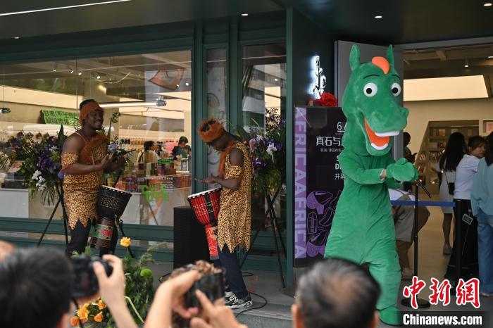 6月19日,甘肅省博物館藝術生活館在甘肅蘭州開館。該館是甘肅省博物館打造的一處復合型高價值文化空間,融合了咖啡、烘焙、展覽、藝術書店、文創(chuàng)銷售等多樣化業(yè)態(tài)。圖為綠馬真人玩偶(右一)熱舞吸引游人。中新社記者 李亞龍 攝