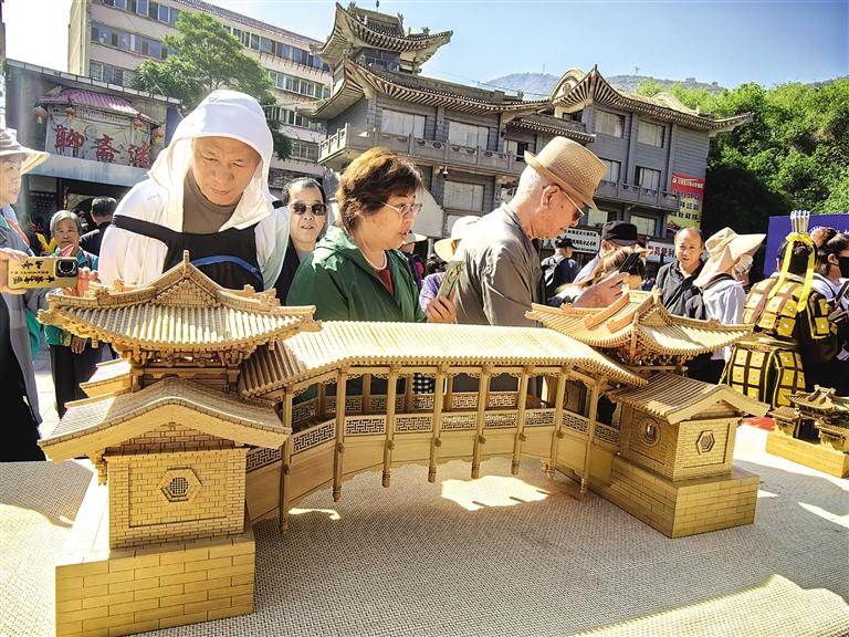 看動態(tài)非遺,每年的“煙火蘭州迎新春”和“文化和自然遺產日”活動中,聯(lián)動各縣區(qū)開展舞龍、舞獅、蘭州太平鼓、蘭州高高蹺、軍儺、旱船、大秧歌等社火展演,開展蘭州刻葫蘆、蘭州剪紙、蘭州泥塑、蘭州黑陶、蘭州陶藝、古建模型等非遺技藝展示,那叫一個紅火。所到之處,人潮涌動,歡呼叫好,不絕于耳。
