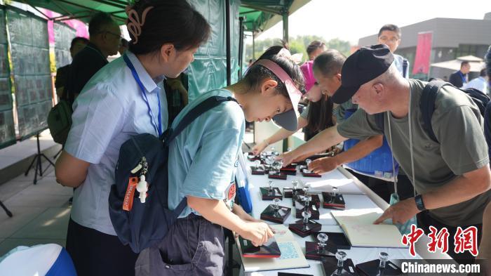 8月3日,《莫高窟(二)》特種郵票首發(fā)儀式上,民眾在蓋郵戳和紀念戳。戴文昌 攝