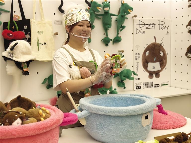 在甘肅省博物館藝術(shù)生活館的購(gòu)物專區(qū),各種食材被做成了毛絨玩具,統(tǒng)一放進(jìn)加大號(hào)的毛絨砂鍋,顧客還可以根據(jù)口味“私人訂制”,最后得到一把全食材版的玩具花束。不少網(wǎng)友看過視頻后,留言“很符合年輕人的‘口味’。”