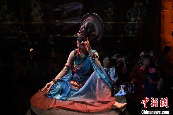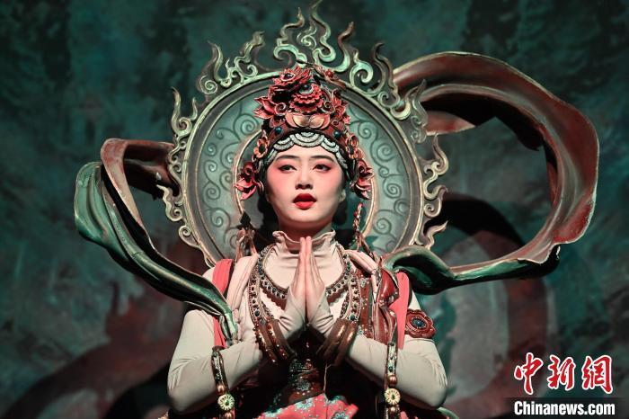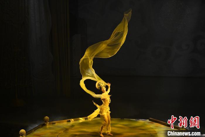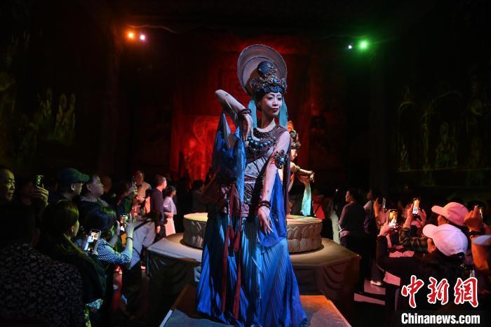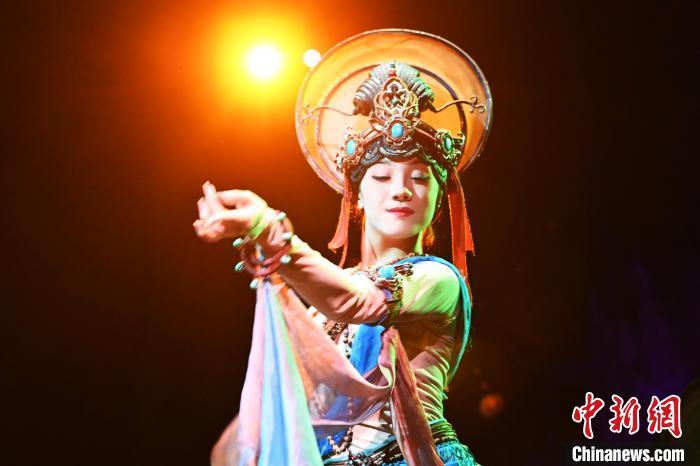 圖為演員在大型洞窟式沉浸體驗劇《樂動敦煌》中表演。九美旦增 攝