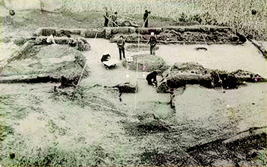 秦安大地灣遺址是1958年發(fā)現(xiàn)的,當(dāng)時(shí)正值全國(guó)文物大普查,隨即被列為省級(jí)文物保護(hù)單位。1978年開(kāi)始發(fā)掘,總面積110萬(wàn)平方米,現(xiàn)揭露面積13700平方米,出土房址238座、灰坑357個(gè),墓葬79座、窯38座、灶臺(tái)106座,各種骨、石、蚌、陶器、裝飾器和生活器物共計(jì)8034件。特別是房屋建筑遺址,不僅規(guī)模宏偉,而且形制復(fù)雜。在發(fā)掘中就被公布為全國(guó)重點(diǎn)文物保護(hù)單位。