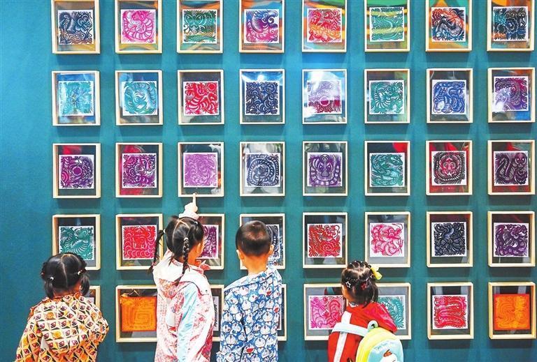 獨(dú)具特色的剪紙作品吸引了孩子們的目光。