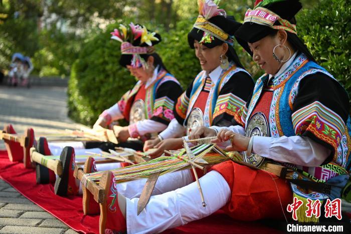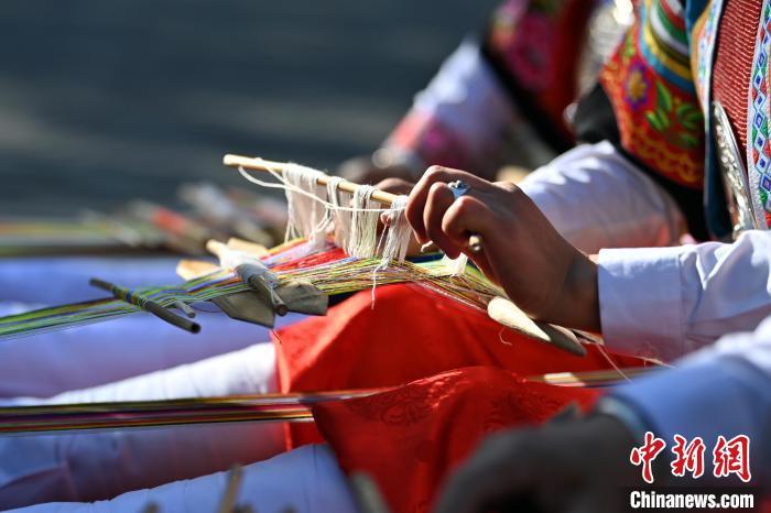 9月26日,甘肅省甘南藏族自治州舟曲縣,當(dāng)?shù)夭刈鍕D女紡織錦帶吸引游人駐足觀賞。錦帶是舟曲藏族婦女用以束腰、扎靴、攏發(fā)乃至點(diǎn)綴服飾的花帶子,艷麗多彩、圖案優(yōu)美。每逢吉慶節(jié)日,藏族婦女穿戴的華麗盛裝就需要少則五、六條,多則十幾條寬窄長短相宜的錦帶來裝飾。據(jù)介紹,藏族織錦帶技藝歷史悠久,一千多年以前,古羌族和吐蕃已有了較發(fā)達(dá)的手工編織技術(shù),在艱難的生活條件下對(duì)服飾等生活用品除實(shí)用功能之外,已經(jīng)有了強(qiáng)烈的審美追求,是研究舟曲羌藏文化的“活化石”。中新社記者 九美旦增 攝