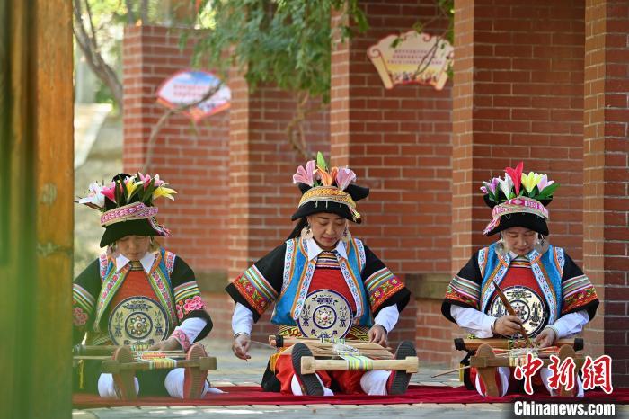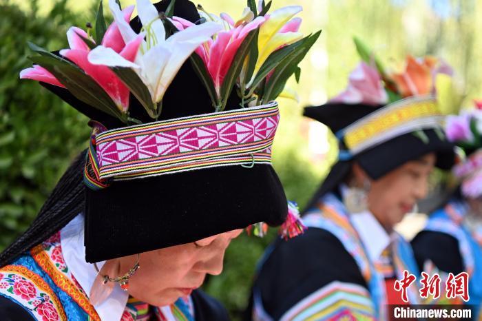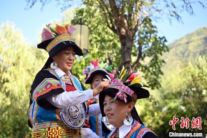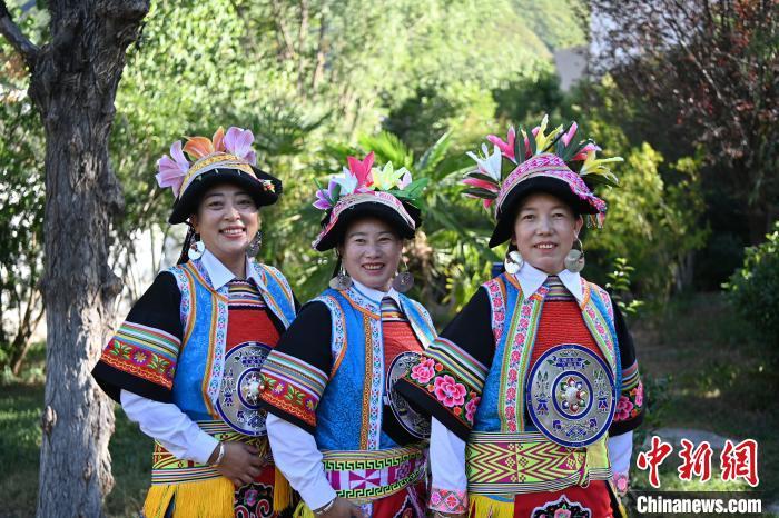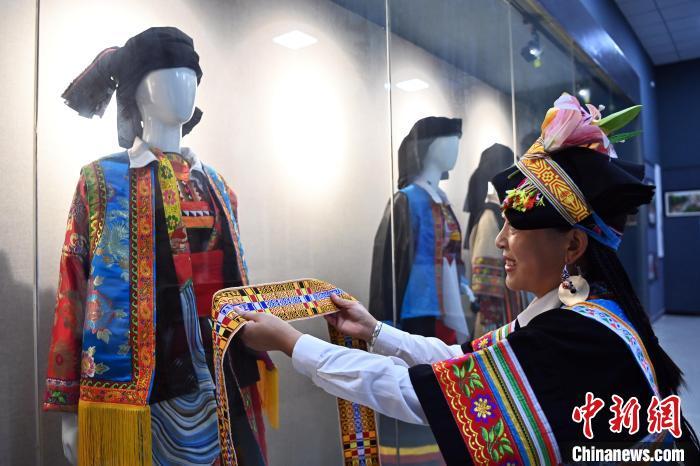 9月26日,甘肅省甘南藏族自治州舟曲縣,當(dāng)?shù)夭刈鍕D女展示錦帶佩戴方式。錦帶是舟曲藏族婦女用以束腰、扎靴、攏發(fā)乃至點(diǎn)綴服飾的花帶子,艷麗多彩、圖案優(yōu)美。每逢吉慶節(jié)日,藏族婦女穿戴的華麗盛裝就需要少則五、六條,多則十幾條寬窄長短相宜的錦帶來裝飾。據(jù)介紹,藏族織錦帶技藝歷史悠久,一千多年以前,古羌族和吐蕃已有了較發(fā)達(dá)的手工編織技術(shù),在艱難的生活條件下對(duì)服飾等生活用品除實(shí)用功能之外,已經(jīng)有了強(qiáng)烈的審美追求,是研究舟曲羌藏文化的“活化石”。中新社記者 九美旦增 攝