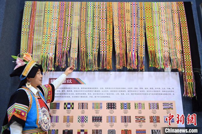 9月26日,甘肅省甘南藏族自治州舟曲縣,當(dāng)?shù)夭刈鍕D女展示紡織好的錦帶。錦帶是舟曲藏族婦女用以束腰、扎靴、攏發(fā)乃至點(diǎn)綴服飾的花帶子,艷麗多彩、圖案優(yōu)美。每逢吉慶節(jié)日,藏族婦女穿戴的華麗盛裝就需要少則五、六條,多則十幾條寬窄長短相宜的錦帶來裝飾。據(jù)介紹,藏族織錦帶技藝歷史悠久,一千多年以前,古羌族和吐蕃已有了較發(fā)達(dá)的手工編織技術(shù),在艱難的生活條件下對(duì)服飾等生活用品除實(shí)用功能之外,已經(jīng)有了強(qiáng)烈的審美追求,是研究舟曲羌藏文化的“活化石”。中新社記者 九美旦增 攝