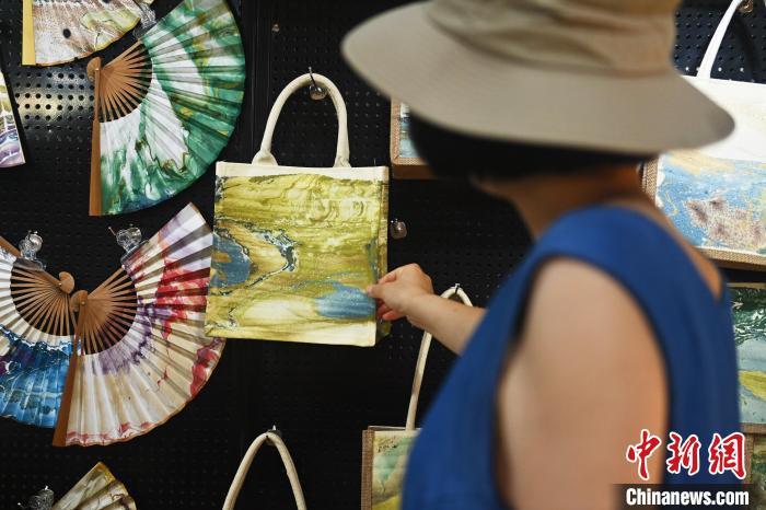 8月20日,甘肅敦煌莫高里工匠村內(nèi),學(xué)員參觀研學(xué)產(chǎn)品。中新社記者 李亞龍 攝
