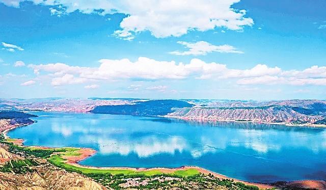 炳靈湖 雄偉的劉家峽大壩阻斷黃河,在永靖境內(nèi)聚成了一座高峽平湖。因這座湖毗鄰炳靈寺石窟和雄奇險(xiǎn)秀的炳靈石林,故稱其為炳靈湖。整個(gè)湖水,在夏秋季呈綠色,就像一塊翡翠鑲嵌在群山之中,散發(fā)著耀眼的光芒,夏秋呈翡翠色,冬春呈藍(lán)色,由于水質(zhì)清澈,群山倒映水中,水天一色,加之湖面廣闊無(wú)垠,看上去平靜如海。但每當(dāng)劉家峽水庫(kù)泄洪的時(shí)候,磅礴的氣勢(shì)猶如蛟龍出水,翻江倒海,氣沖云天。