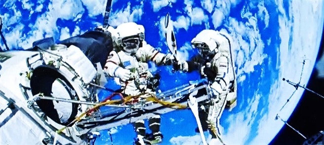 華夏宏猷,探秘穹蒼,志壯九霄。望神舟騰躍,昂然破霧;星河競渡,自若凌濤。萬仞逍遙,千鈞穩(wěn)負,眾慧凝心膽氣豪。長天里,看巡行軌跡,陣布云高。