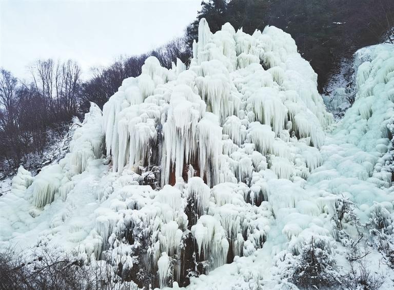 美輪美奐的冰雪景觀、趣味十足的冰雪項目……踏入渭河源東源景區(qū),仿若闖入一個冰清玉潔的琉璃世界,雪道、冰掛、雪雕等打卡區(qū)初具雛形。工作人員忙碌地平整雪道、調(diào)試設(shè)備,為冰雪旅游全力準備。半山處,冰瀑恰似銀河倒掛,氣勢恢宏又不失婉約之態(tài),在日光的映照下,折射出五彩華光,似夢幻仙境。冰瀑周身,冰掛百態(tài)千姿,或尖銳如狼牙,或柔順若絲絳,或玲瓏似珊瑚,宛如自然女神精心雕琢的稀世珍寶,鬼斧神工,令人嘆為觀止。