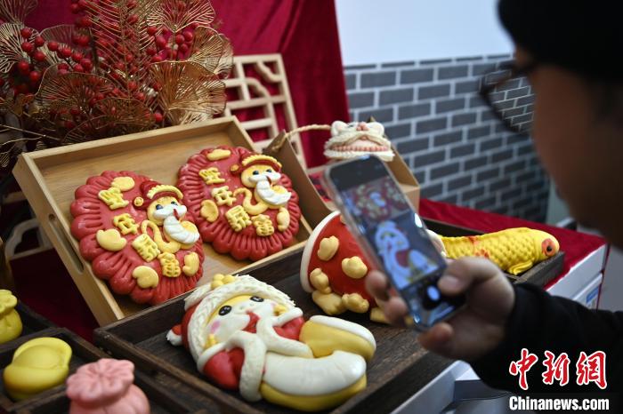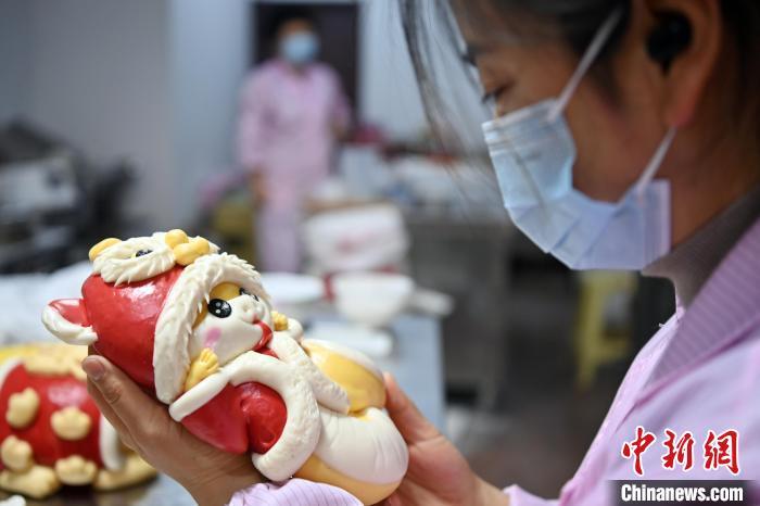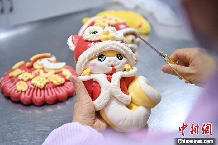 圖為面點(diǎn)師制作的“萌蛇”花饃。中新社記者 九美旦增 攝