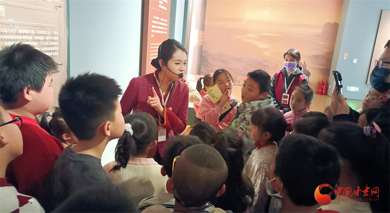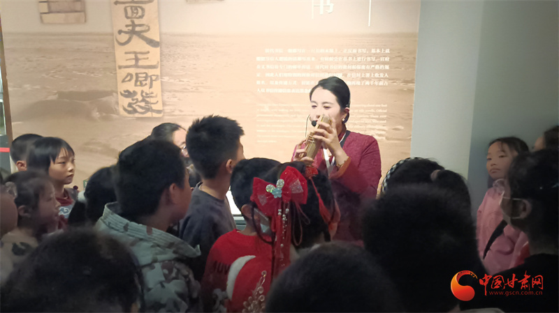 活動(dòng)中,講解員帶著同學(xué)們走進(jìn)甘肅簡牘博物館,將藏在簡牘中的漢代春節(jié)講給同學(xué)們聽。
